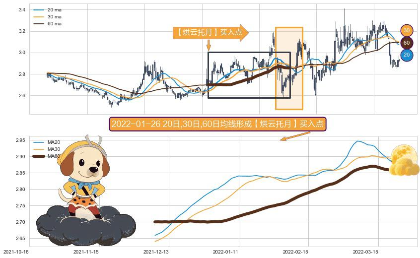 形态多维评估: ⚀ 2021-12-07日-2022-03-23日显现 20日-30日-60日均线 【烘云托月】买入点 看多信号,后市看涨,买入