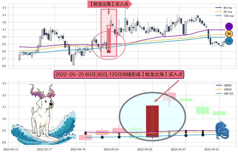 形态多维评估: ⚀ 2022-05-25日显现 60日-90日-120日均线 【蛟龙出海】买入点 看多信号,后市看涨,买入