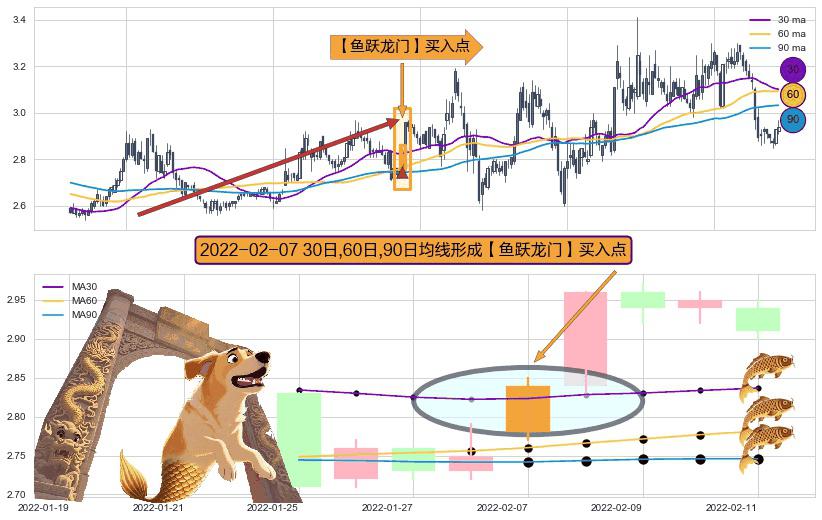 形态多维评估: ⚀ 2022-02-07日显现 30日-60日-90日均线 【鱼跃龙门】买入点 看多信号,后市看涨,买入