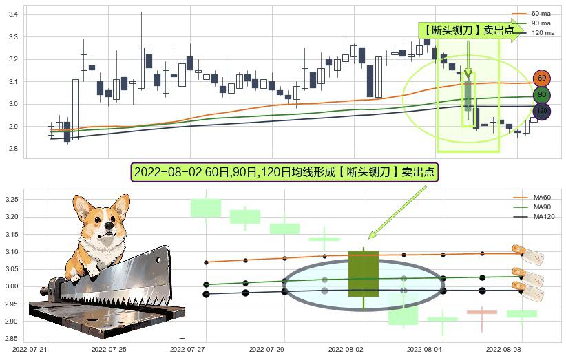 形态多维评估: ⚀ 2022-08-02日显现 60日-90日-120日均线 【断头铡刀】卖出点 看空信号,后市看跌,卖出
