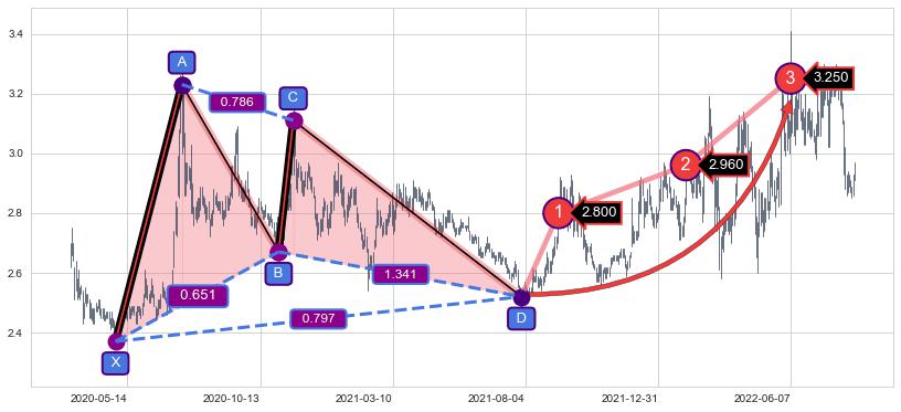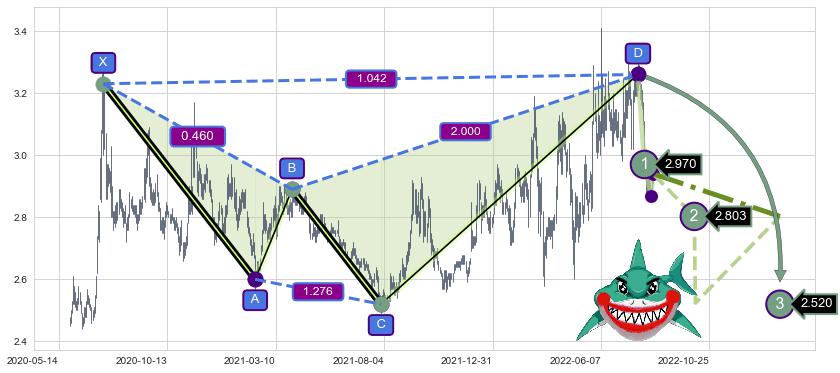 ➣ 已完成【鲨鱼】形态起点X: 2020-07-14, 终点D: 2022-07-25, 共494交易日
