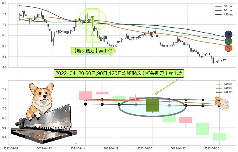 形态多维评估: ⚀ 2022-04-20日显现 60日-90日-120日均线 【断头铡刀】卖出点 看空信号,后市看跌,卖出
