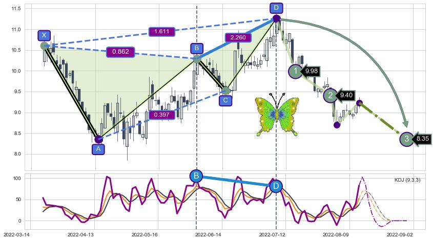 ➣ 已完成【蝴蝶】形态起点X: 2022-03-18, 终点D: 2022-07-07, 共74交易日