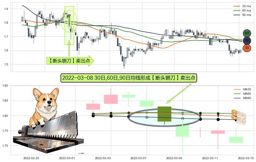形态多维评估: ⚀ 2022-03-08日显现 30日-60日-90日均线 【断头铡刀】卖出点 看空信号,后市看跌,卖出