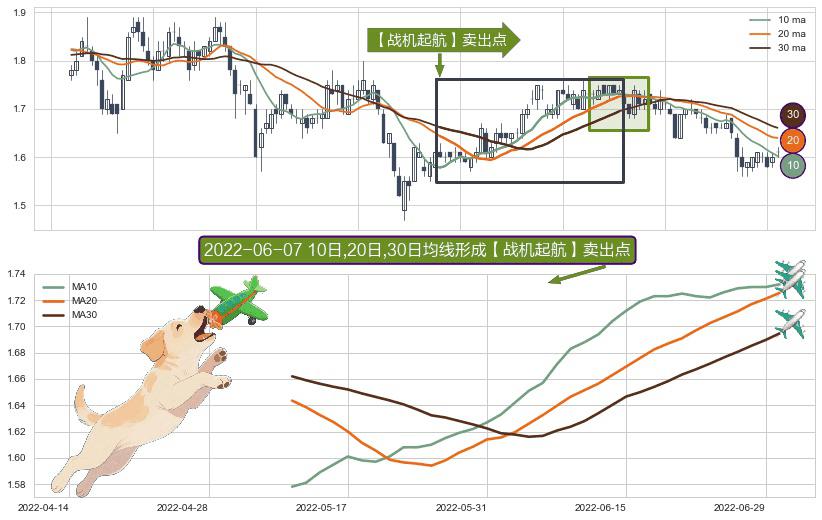 形态多维评估: ⚀ 2022-05-11日-2022-06-30日显现 10日-20日-30日均线 【战机起航】卖出点 看空信号,后市看跌,卖出