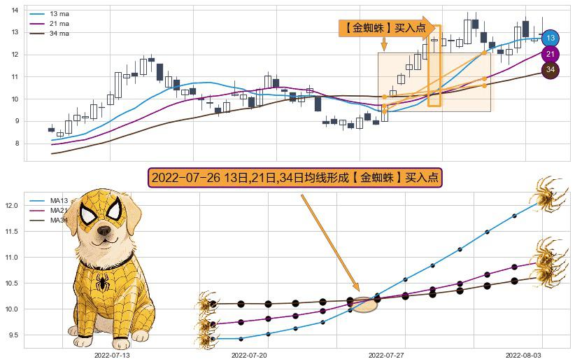 ⚀ 2022-07-26日显现 13日-21日-34日均线 【金蜘蛛】买入点 看多信号,后市看涨,买入