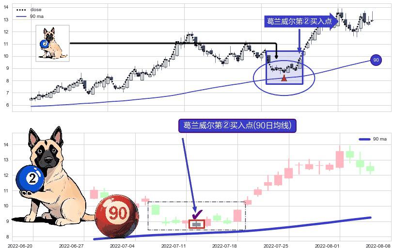 ⚀ 2022-07-12-日显现 葛兰威尔均线 90日均线 第②买入点 上升趋势的中继信号,后市看涨,买进信号