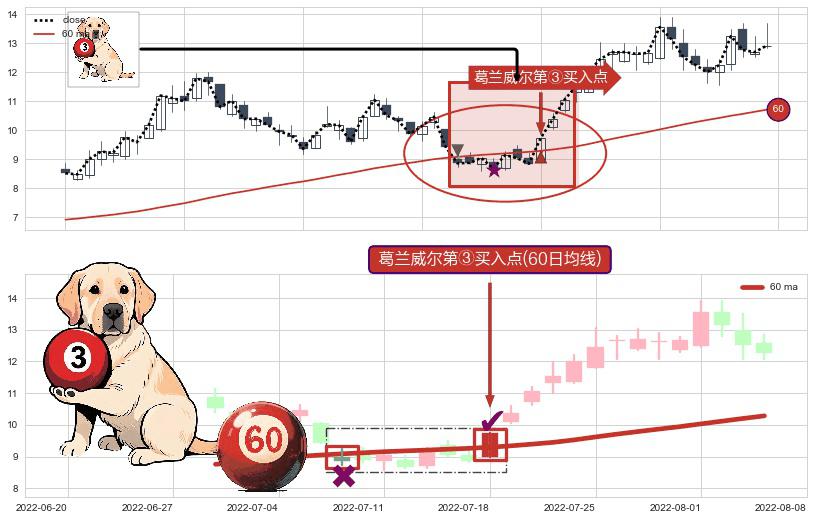 ⚀ 2022-07-18-日显现 葛兰威尔均线 60日均线 第③买入点 上升趋势的中继信号,后市看涨,买进信号