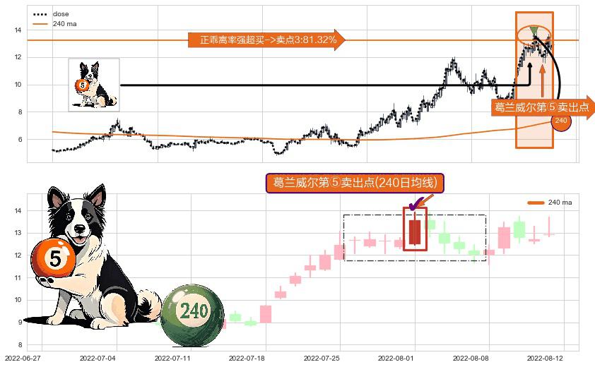⚀ 2022-08-01-日显现 葛兰威尔均线 240日均线 第⑤卖出点 上升趋势均值回复的短线回落信号,后市看跌,卖出信号
