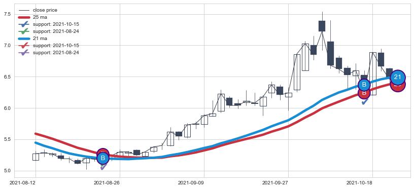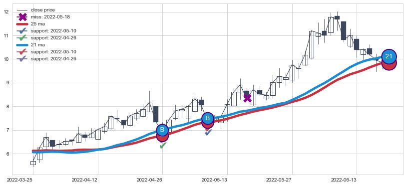 ⚂ 2022-07-07-日均线向下破位,2022-07-18-日重新上穿突破均线,均线支撑再次生效