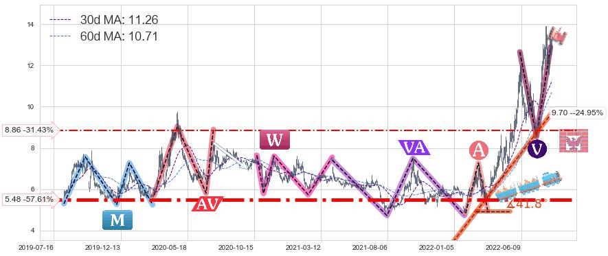 ♘ 支撑价格位8.86,可信任强度50.66%,距离最后交易2022-08-12形成的收盘价格12.92相差 -31.43%