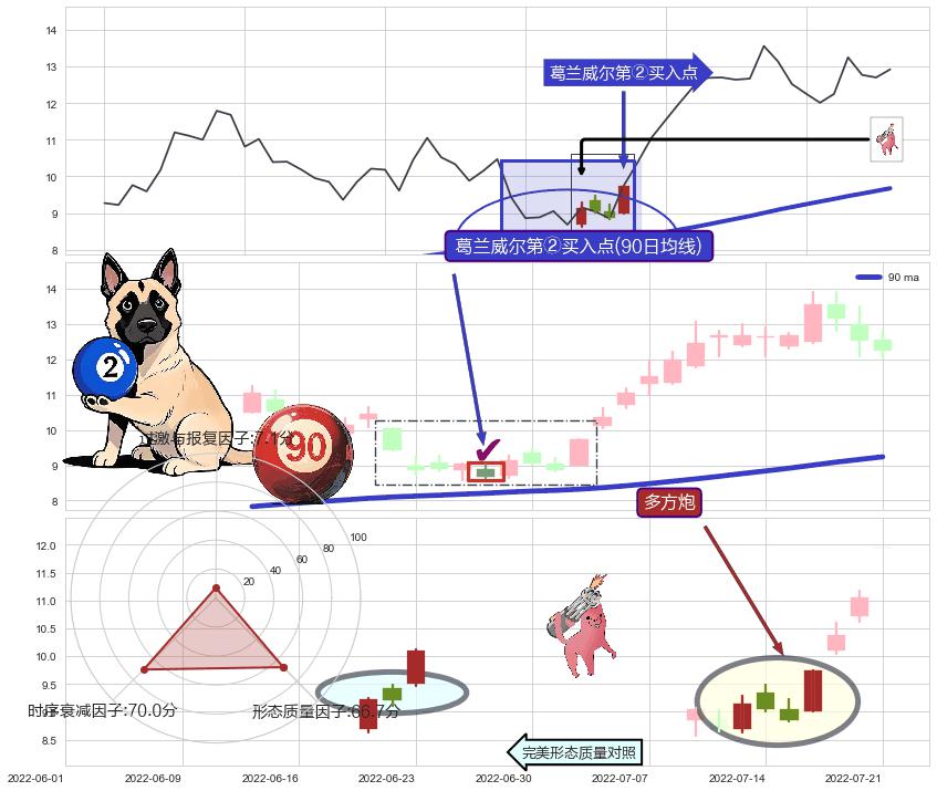 | 17 🅚:下探上涨 ➕ 🎢:【蛟龙出海】买入点均线组合买入点信号形成后,猜想后续阻力突破,后市持续上涨 ☞ 看多信号 ⇥ 【均线】交织【🅚线】⇥ 综合量化分数: 51 | > |