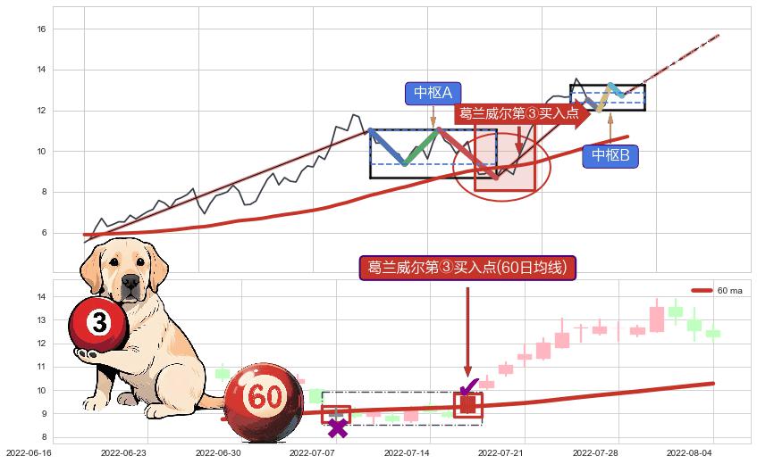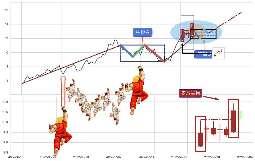 ➢ 【中枢B】:2022-08-03-2022-08-11,中枢由4笔构成,共7交易日, ZG=12.70, ZD=12.52