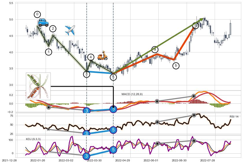 ➢ a,c调整浪MACD, RSI, KDJ走势都【未出现】背离,abc走势延续, 5浪反转概率增强