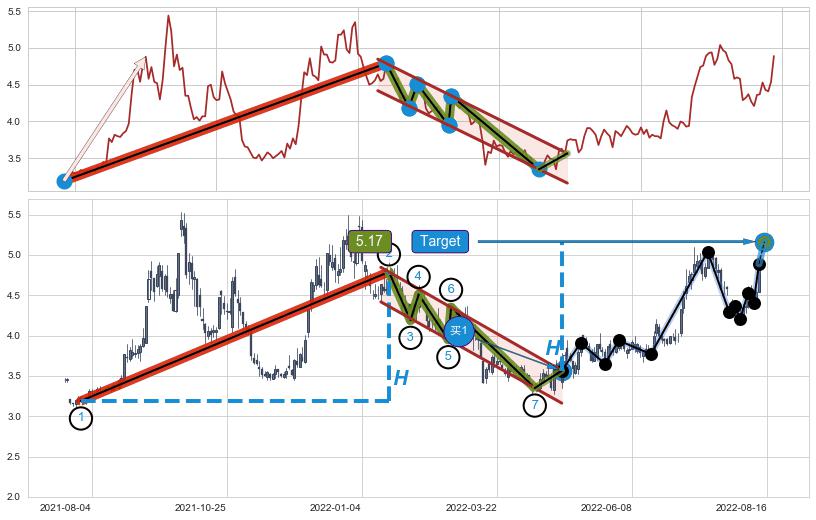 ➣ AI预测: 假定反转启动后, 第❶目标位置(2023-04-05, 5.02)