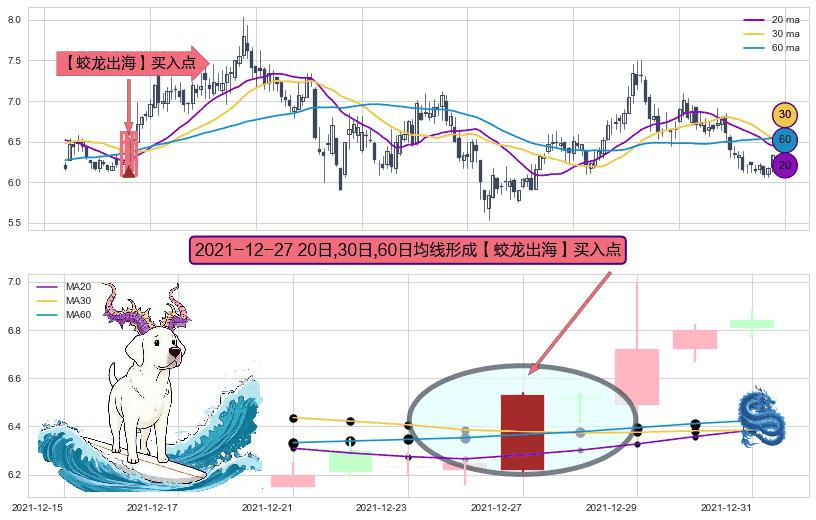 ⚀ 2021-12-27日显现 20日-30日-60日均线 【蛟龙出海】买入点 看多信号,后市看涨,买入