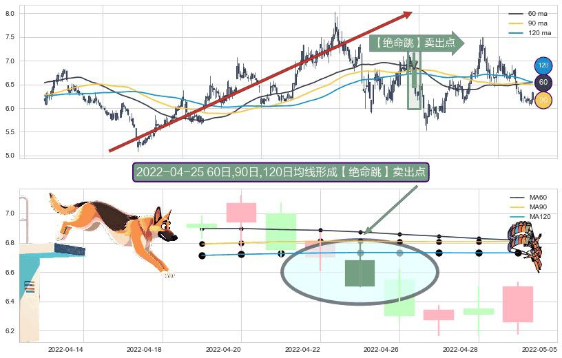 ⚀ 2022-04-25日显现 60日-90日-120日均线 【绝命跳】卖出点 看空信号,后市看跌,卖出