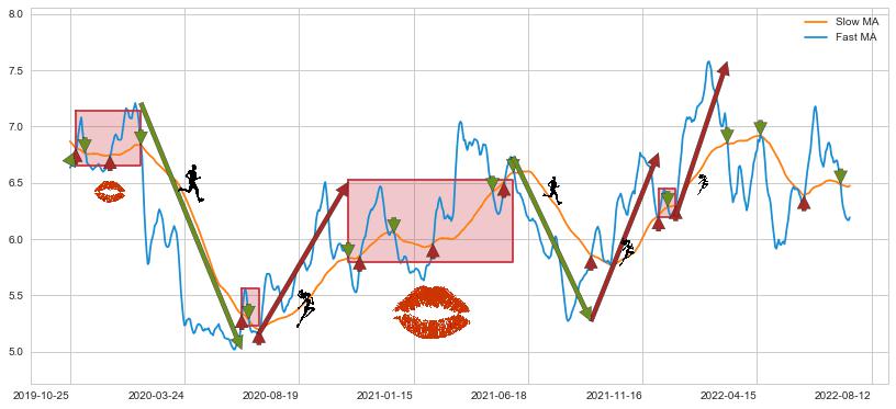 2021-12-27至2022-03-08 慢线与快线呈多头排列, 慢线与快线接触少,无缠绕