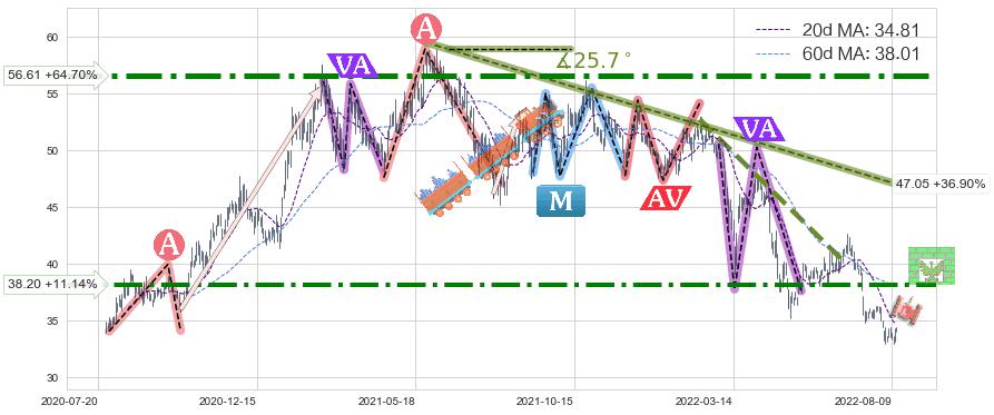 ♘ 阻力价格位38.20,可信任强度74.45%,距离最后交易2022-08-12形成的收盘价格34.37相差 +11.14%