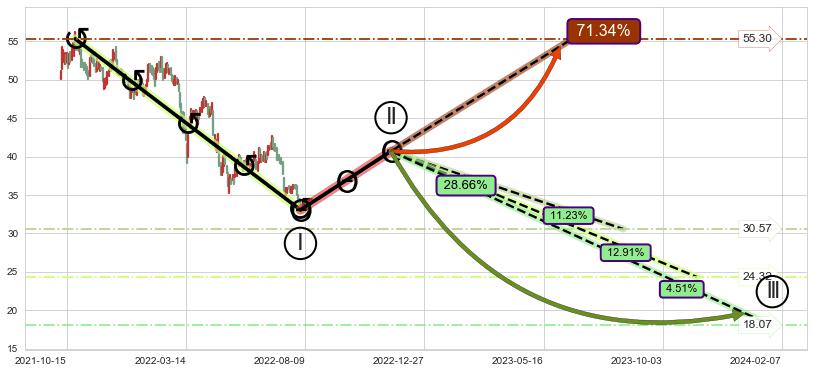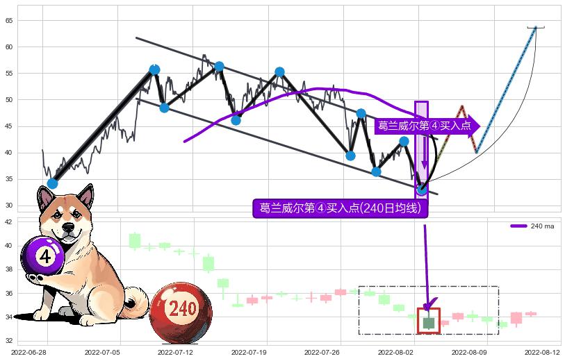 ➣ D点拟合预测价格28.96,距离最后交易收盘价格34.37相差 -15.74%