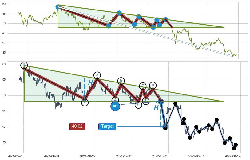 ➢ AI预测: 假定反转启动后, 第❷目标位置(2023-06-27, 47.22)