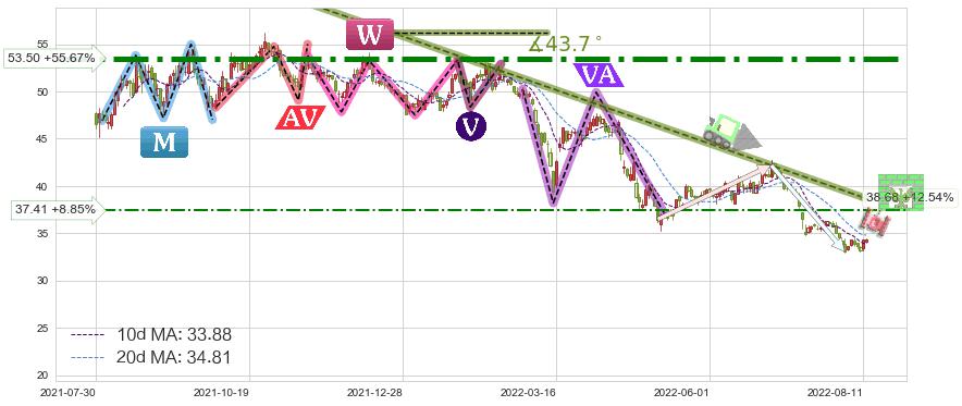 ♘ 阻力价格位37.41,可信任强度46.18%,距离最后交易2022-08-12形成的收盘价格34.37相差 +8.85%