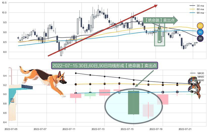 ⚀ 2022-07-15日显现 30日-60日-90日均线 【绝命跳】卖出点 看空信号,后市看跌,卖出
