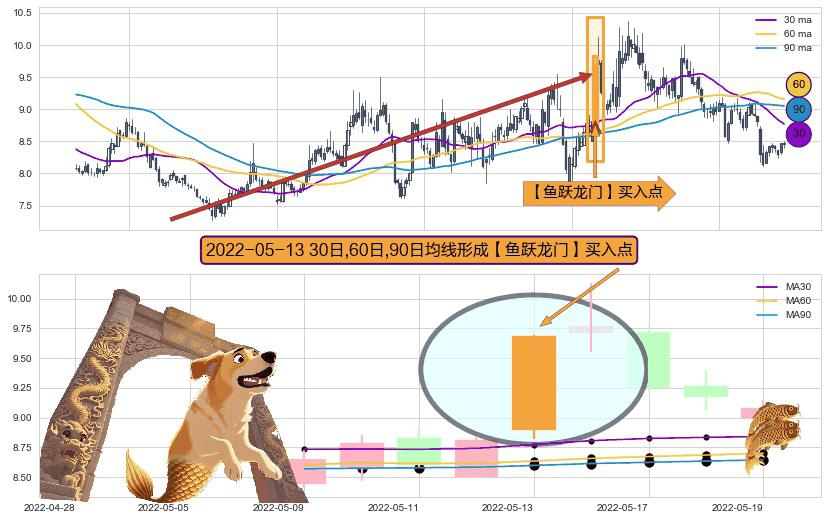 ⚀ 2022-05-13日显现 30日-60日-90日均线 【鱼跃龙门】买入点 看多信号,后市看涨,买入