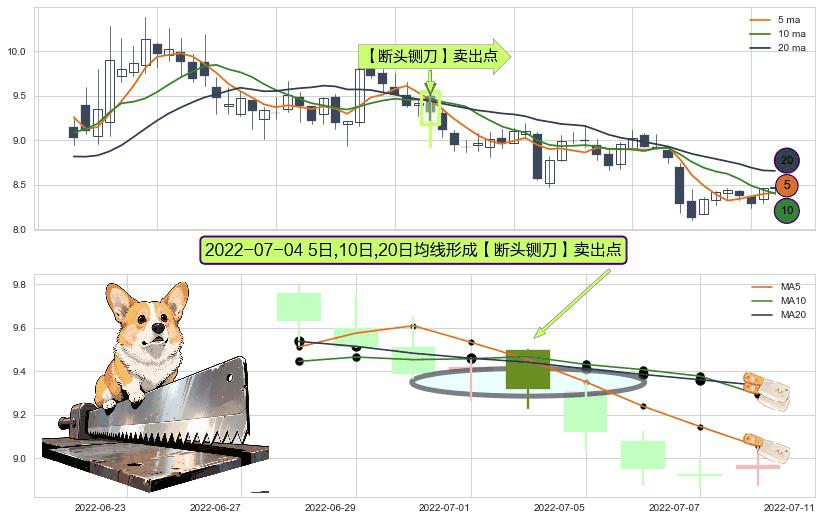 ⚀ 2022-07-04日显现 5日-10日-20日均线 【断头铡刀】卖出点 看空信号,后市看跌,卖出