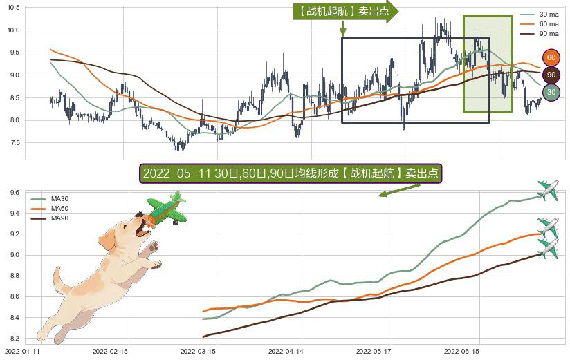 ⚀ 2022-03-10日-2022-07-05日显现 30日-60日-90日均线 【战机起航】卖出点 看空信号,后市看跌,卖出