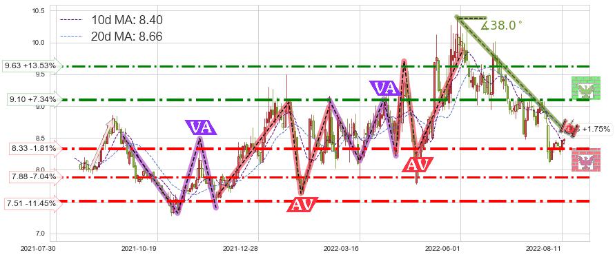 ♘ 阻力价格位9.63,可信任强度56.67%,距离最后交易2022-08-12形成的收盘价格8.48相差 +13.53%