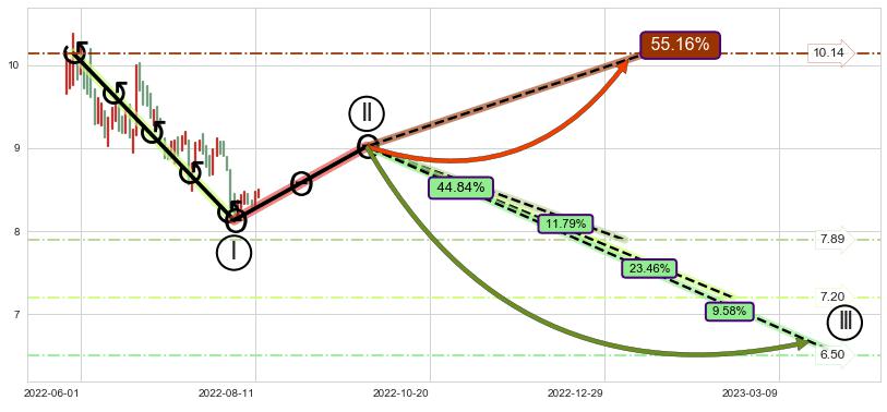 ➢ AI预测: 假定反转如期而至,第❸价格目标位置(2022-10-19, 10.14)
