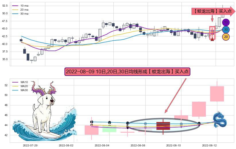 ⚀ 2022-08-09日显现 10日-20日-30日均线 【蛟龙出海】买入点 看多信号,后市看涨,买入