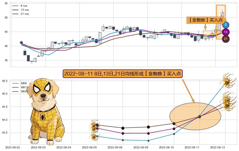 ⚀ 2022-08-11日显现 8日-13日-21日均线 【金蜘蛛】买入点 看多信号,后市看涨,买入