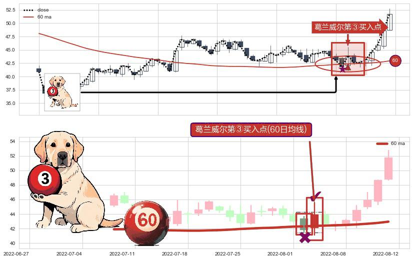 ⚀ 2022-08-03-日显现 葛兰威尔均线 60日均线 第③买入点 上升趋势的中继信号,后市看涨,买进信号