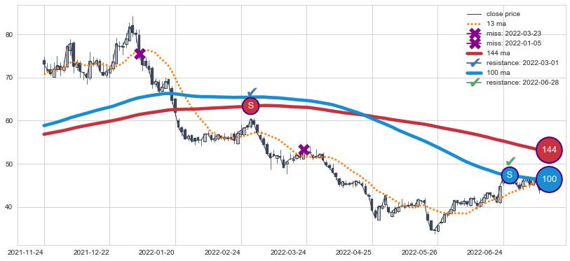 ⚄ 短期均线MA8上穿中期均线MA13形成的交叉是标准 黄金交叉
