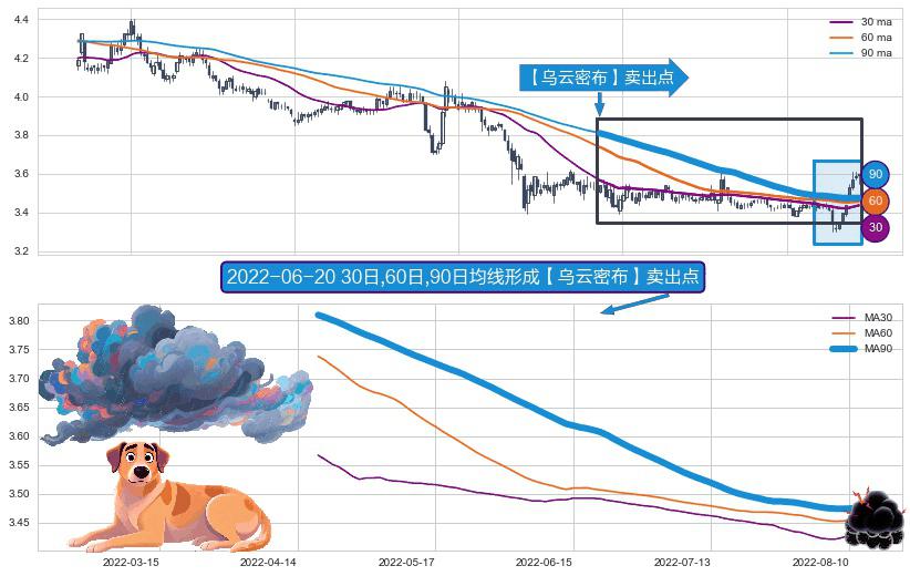 ⚀ 2022-04-19日-2022-08-12日显现 30日-60日-90日均线 【乌云密布】卖出点 看空信号,后市看跌,卖出