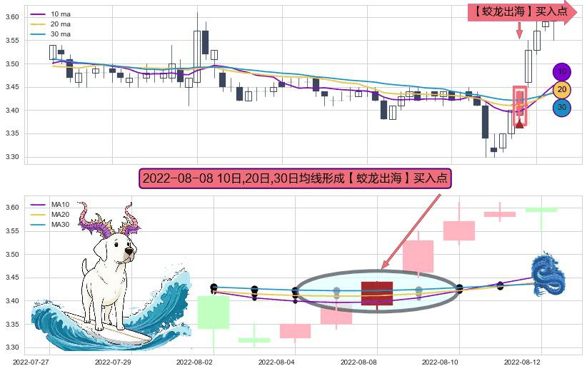 ⚀ 2022-08-08日显现 10日-20日-30日均线 【蛟龙出海】买入点 看多信号,后市看涨,买入