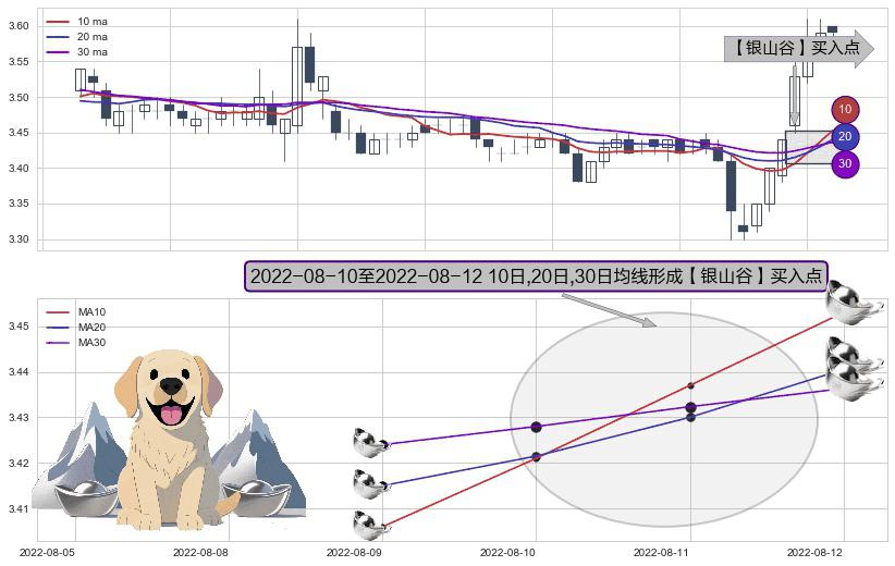 ⚀ 2022-08-11-日至2022-08-12-日显现 10日-20日-30日均线 【银山谷】买入点 看多信号,后市看涨,买入