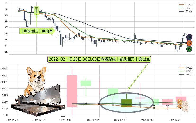 ⚀ 2022-02-15日显现 20日-30日-60日均线 【断头铡刀】卖出点 看空信号,后市看跌,卖出