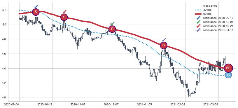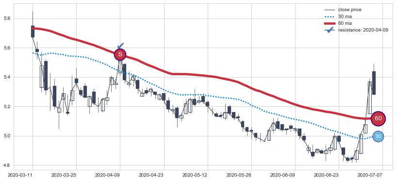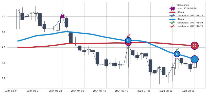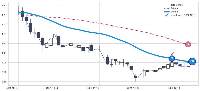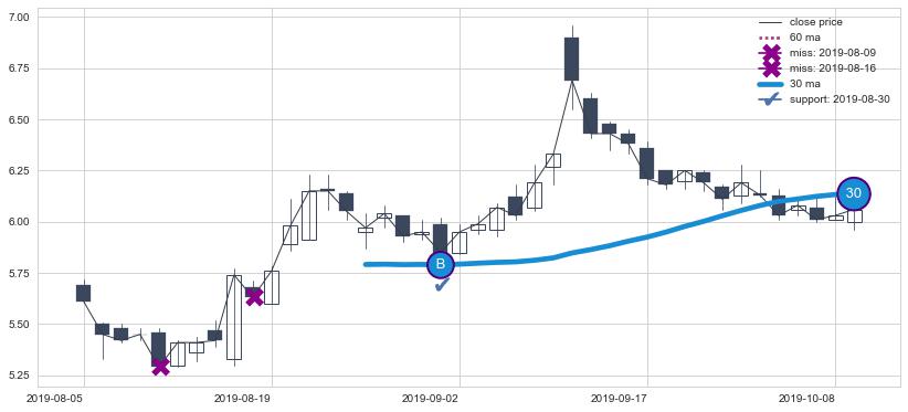 ⚁ MA30和MA60走势平行,且始终保持在短距离内,MA90始终在短中期均线上方,与短中期均线保持一定的距离,微微下行