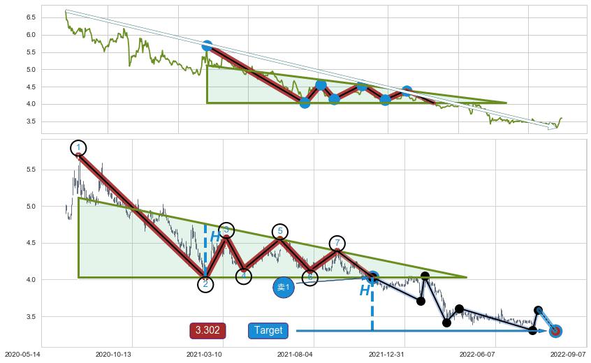➢ 【已确认突破】最后价格:3.590与最小【整理】第一目标价格→(2022-09-07: 3.302 )相较: 下跌空间【较小】