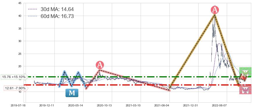 ♘ 阻力价格位15.76,可信任强度70.73%,距离最后交易2022-08-12形成的收盘价格13.69相差 +15.10%