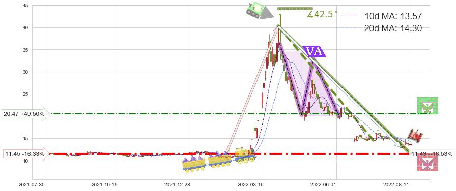 ♘ 阻力价格位20.47,可信任强度45.18%,距离最后交易2022-08-12形成的收盘价格13.69相差 +49.50%