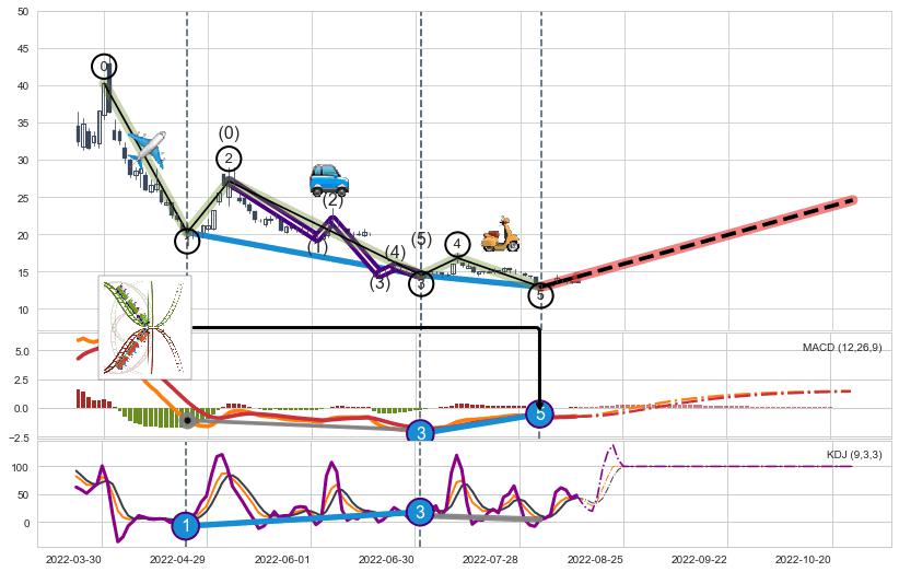 | 2 🅚:旭日东升 ➕ 🌊:波浪理论猜想下跌浪5已形成,猜想后续形成abc反弹上涨(均值回复) ☞ 看多信号 ⇥ 【🅚线】交织【图形】⇥ 综合量化分数: 51 | > |
