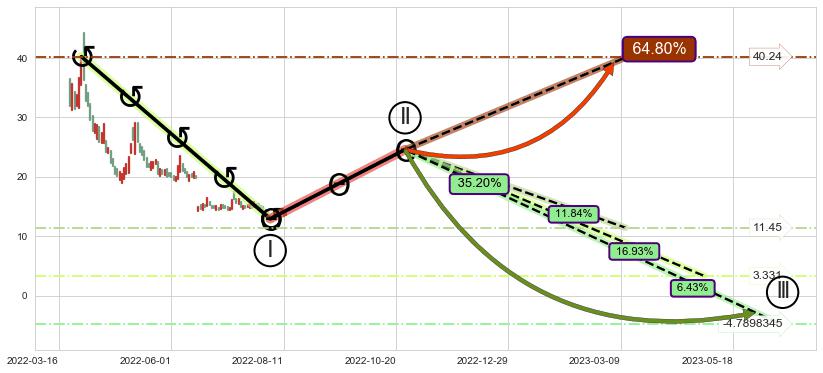 ➣ 循环浪继续向下【平均值】位置(2023-05-01, 3.331),匹配聚类样本比例48.09%, 可能性概率16.93%