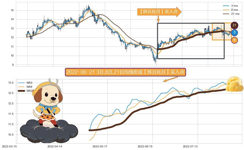 ⚀ 2022-05-05日-2022-08-03日显现 3日-8日-21日均线 【烘云托月】买入点 看多信号,后市看涨,买入