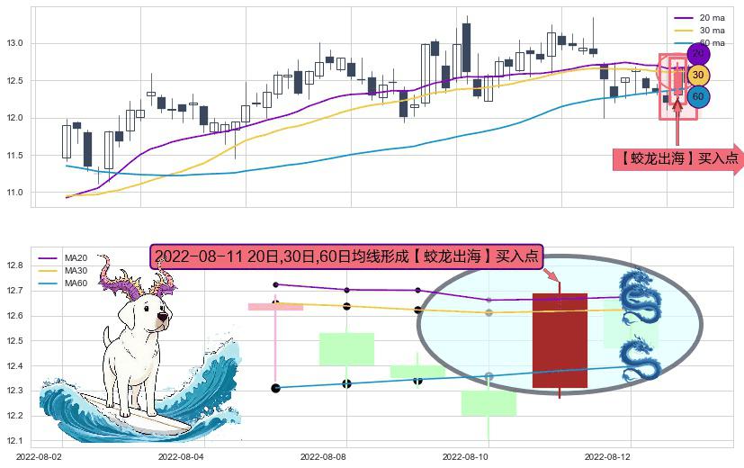 ⚀ 2022-08-11日显现 20日-30日-60日均线 【蛟龙出海】买入点 看多信号,后市看涨,买入