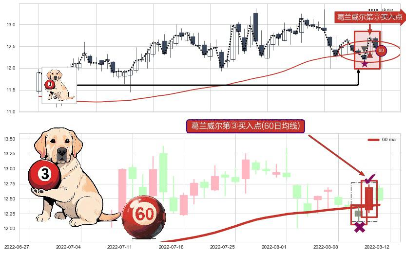⚀ 2022-08-11-日显现 葛兰威尔均线 60日均线 第③买入点 上升趋势的中继信号,后市看涨,买进信号