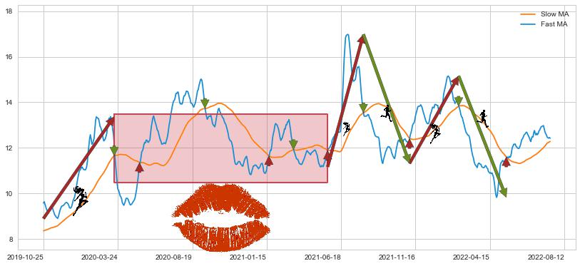 2022-02-14至2022-05-20 慢线与快线呈空头排列, 慢线与快线接触少,无缠绕